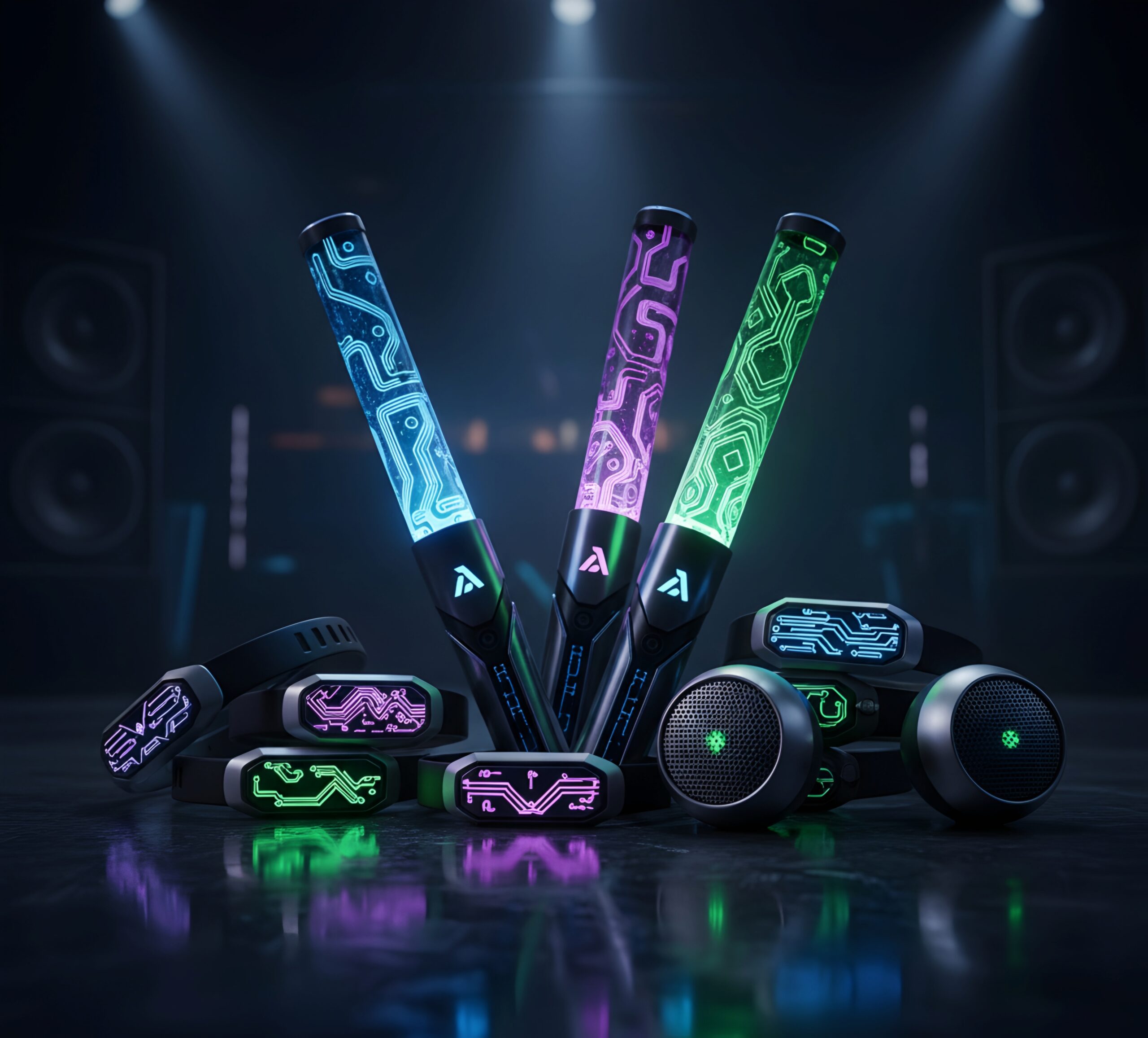 The client needed an immersive, high-energy, but their vision was complex. It started with the bespoke build team, designing and fabricating a cutting-edge stage installation and thousands of custom LED accessories using repurposed source materials. This commitment ensured the artistic vision was realized with minimum ecological impact.